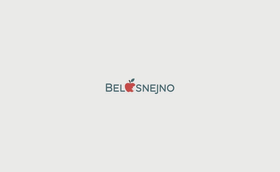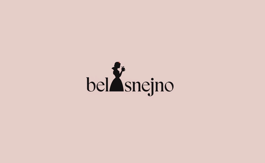 ideogram ai prompt/ The logo for the minimalistic brand Belosnejno with the style of the fairy tale Snow White, which makes healthy sweets and snacks from apples in a minimalistic and cute style, in light shades with pictures of apples/