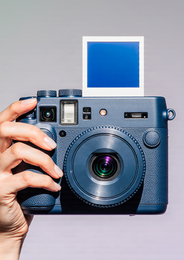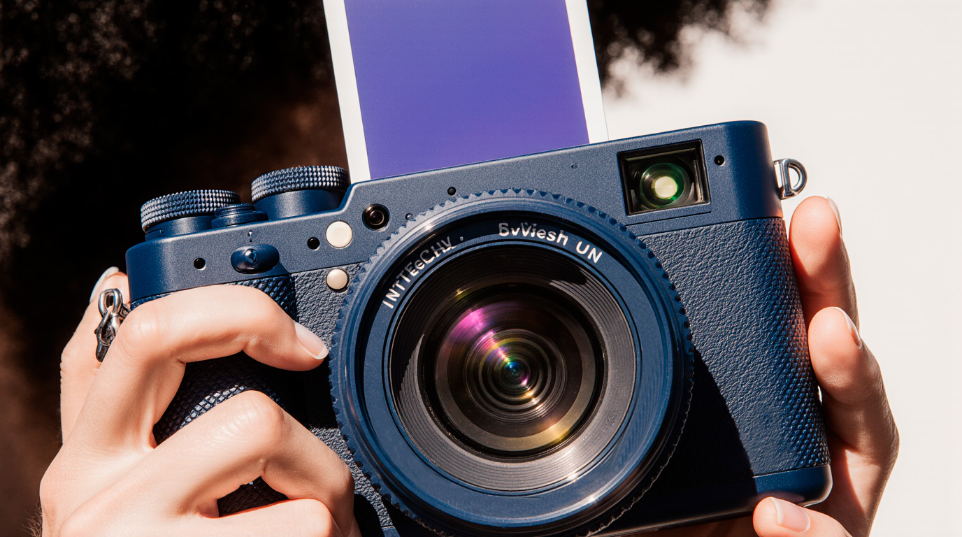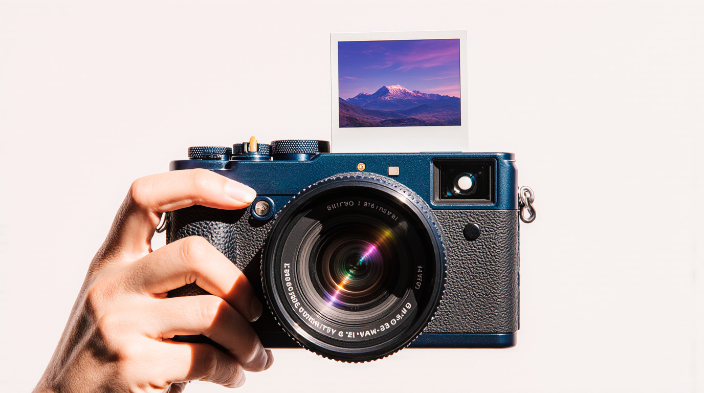 5. Баннер с человеком был сгенерирован в Krea, но промпт был написан с помощью ChatGPT: модели было отправлено фото улыбающейся женщины с фотоаппаратом в руках, а также запрос с просьбой описать данную фотографию так, будто нейросети нужно её сгенирировать. Промпт: I need to generate an image with a blue camera: a woman holding a portable camera. I have attached an exmaple of the image that i would want to recreate. Which prompt would you you use to generate it? Промпт для генерации готового изображения в Krea: generate a 16:9 Hyperrealistic photo of a woman holding a modern, small sized square-shaped instant print camera with a matte blue plastic body and a large round lens. The woman is standing against a simple neutral background (like soft gray or muted green). She holds the camera up near her face, as if about to take a photo, smiling slightly. The lighting is natural and studio-like, with soft shadows and realistic reflections on the camera’s surface and lens. The camera design should match a contemporary portable instant print model, with a photo slot on top and minimal branding. High-resolution product-style image, realistic textures, natural skin tones, and accurate proportions.