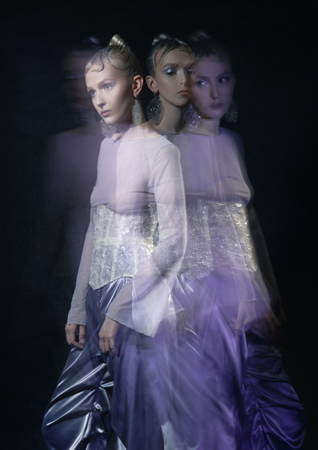 Проект представляет собой лукбук коллекции независимого дизайнера, вдохновленной текстурой стекла: прозрачной, незаметной, острой и многогранной. В качестве основного концептуального према используется съемка на длинной выдержке, что помогает показать блестящую текстуру изделий, а также метафорично показывает переотражения и рефлексы, которые возникают на стеклянных поверхностях.