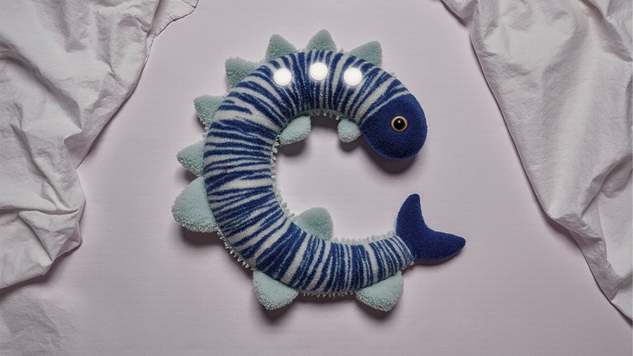 Выбрала я на эту роль лохнесское чудовище, он имеет удобную форму и водную тематику, подходящую под стиль асконы. Основная функция игрушки совмещается с ключевой ценностью самого бренда — защищать сон ребенка — а имя имя «Несси» звучит дружелюбно, сразу ассоциируется с лохнесским чудовищем и делает образ менее абстрактным и более личным для ребенка.