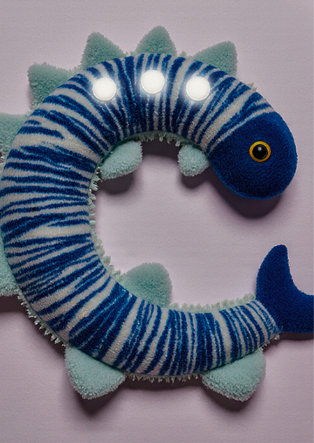 Для Асконы здоровый сон — это основа всего, и я решила подумать, какие ассоциации у меня есть с этим словом. К моему удивлению, мне сразу вспомнились страшилки, которые рассказывают всем детям про монстров под кроватью или злого волка, и я подумала, что если сделать игрушку–монстра, который будет не пугать ребенка, а охранять его сон.