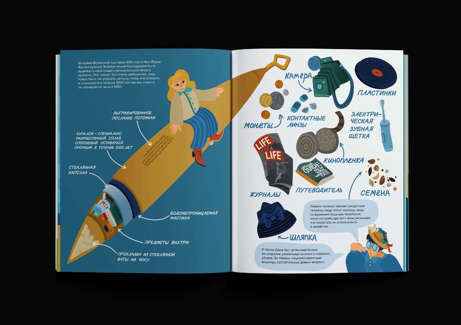 В нонфике исследуются современные послания в будущее, начиная с капсул времени XX века и заканчивая сообщениями, которые отправились в путешествие к далеким звездам. Читатель следует за главными героями: любопытной девочкой и мудрой библиотекаршей. Вместе они открывают много нового и становятся частью истории.