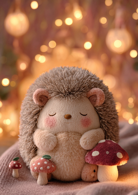 Мягкая игрушка для детей. Это ёжик, к спине которого на магнитах крепятся дары леса (яблоки, грибы и даже листья). Задача детей — помочь ежику собрать предметы. Проект одновременно удовлетворяет не только потребность в развивающей игрушке, но и игрушки для сна.