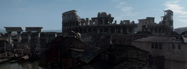 Элемент римской архитектуры присутствует в неожиданном месте — у входа в публичный дом, в котором растет Артур. Вход представляет собой портик: две ионические колонны на стереобате с антаблементом (капитель, фриз, карниз). Вряд ли это остатки сооружений Римской империи, так как весь остальной публичный дом не содержит элементов римской архитектуры. Скорее всего он построен под вдохновением от окружающих развалин. А также, возможно, ирония на тему «храма любви и его жриц».