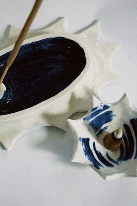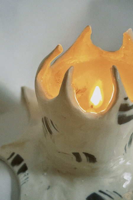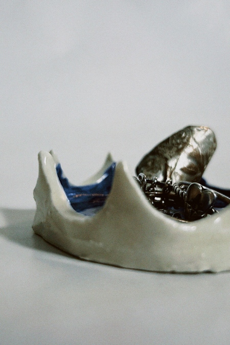 серия керамических объектов, работающих с идеей удержания непроявленной агрессии. острые элементы фиксируют внутреннее напряжение, переводя его в форму ритуального предмета. объекты функционируют как контейнеры давления, где утилитарность намеренно ограничена.