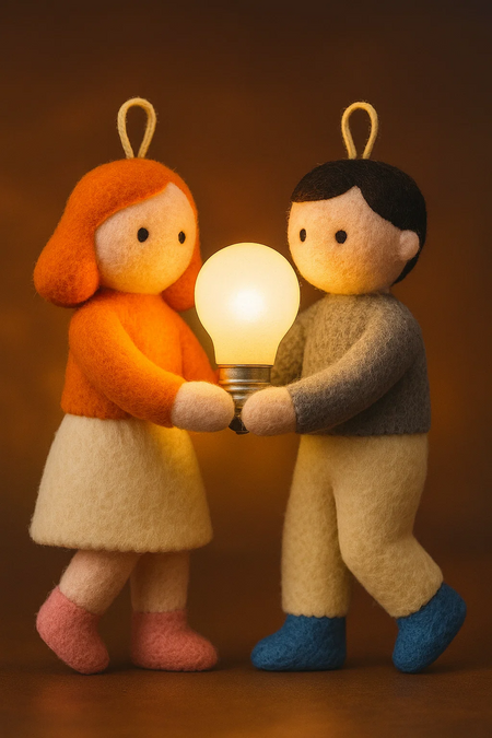 Перед Вами набор новогодних елочных игрушек, созданный для онкологического центра имени Н. П. Напалкова: каждая игрушка выполнена вручную и представляет из себя персонажа с лампочкой — символом света, надежды и поддержки