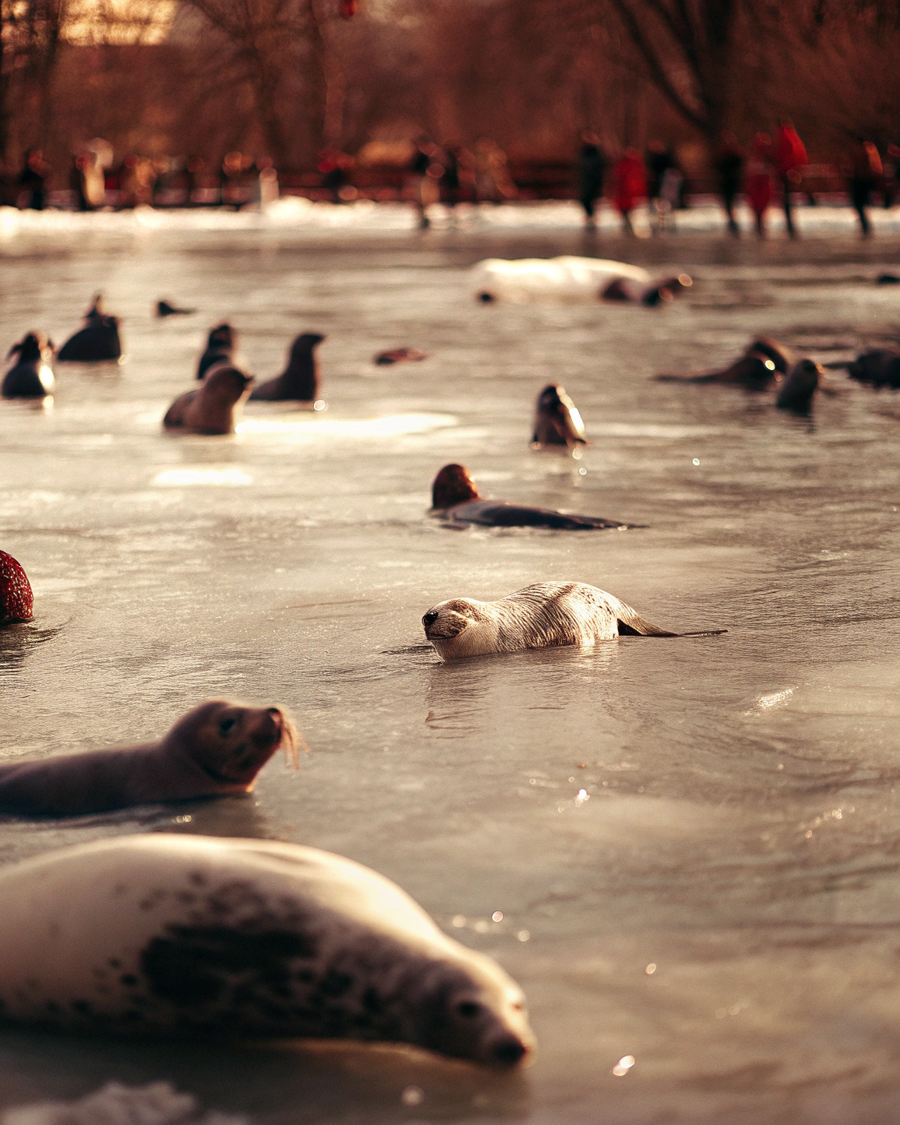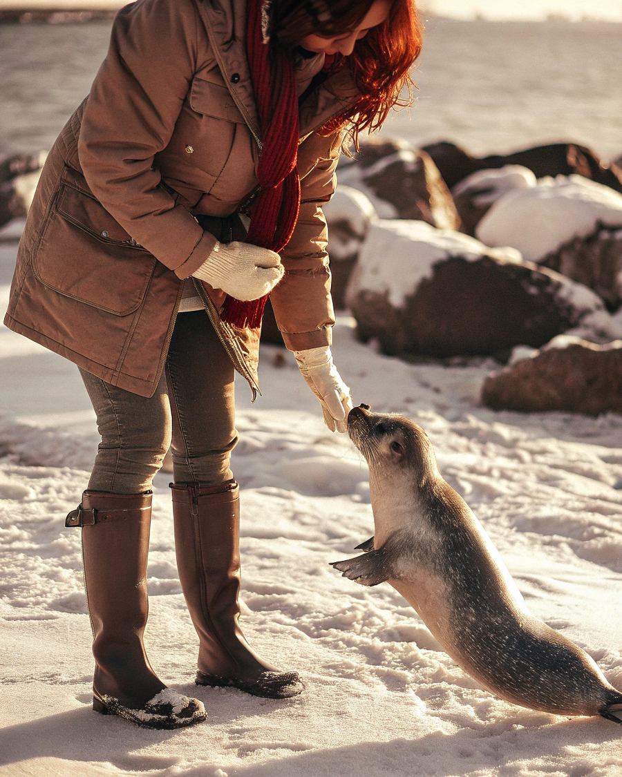 Серия реалистичных рекламных фотографий для заповедника-нерпинария «Хохломская нерпа». Главные образы — байкальские нерпы в естественной среде, на фоне озера Байкал и берегов заповедника. Нерпы взаимодействуют с людьми-сотрудниками заповедника, художниками и детьми, создавая тёплую, дружелюбную атмосферу.
