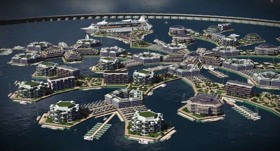 Строительство городов предполагается осуществлять на сети взаимосвязанных модульных плавучих платформ, а высокотехнологичная инфраструктура должна обеспечивать город всеми необходимыми ресурсами, делая его полностью автономным.