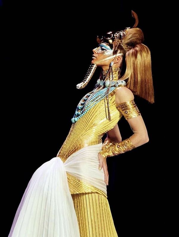 Return to cleopatra.1997. Коллекция Гальяно, в которой дизайнер совмещает голливуд 40-х и образ древнеегипетской царицы.
