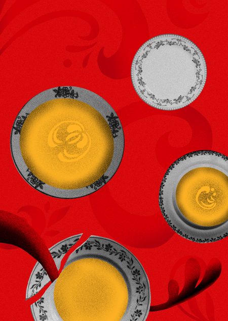 Образы огненных птиц и Змея Горыныча отсылают к сказочности хохломской живописи. Коллажная техника иллюстрирует объединение двух миров — реального и мифологического.