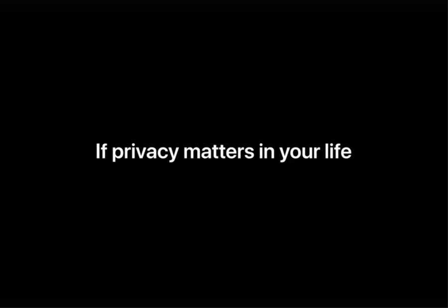 «Privacy. That’s iPhone.» — заглавное слогановое утверждение кампании.