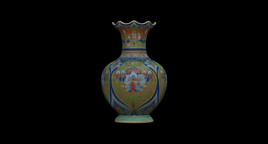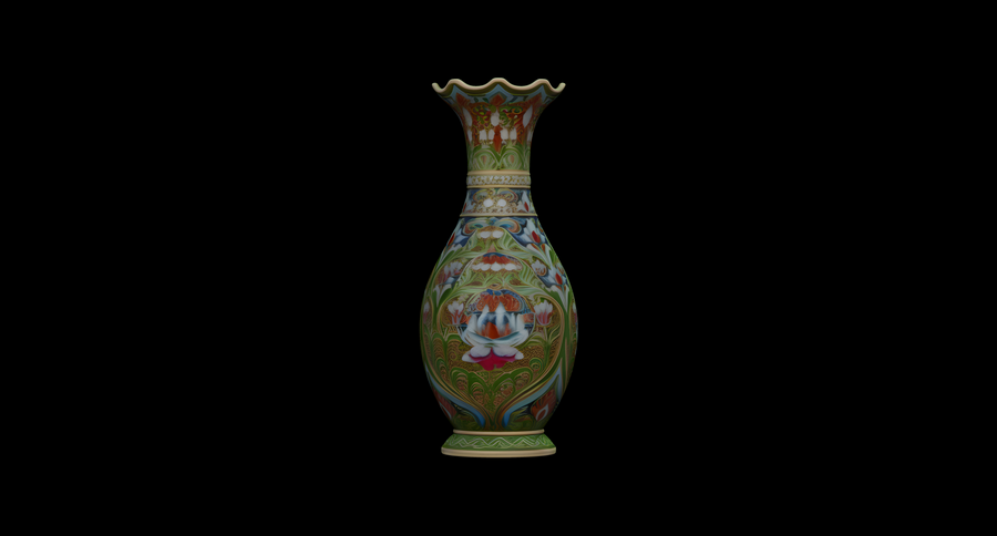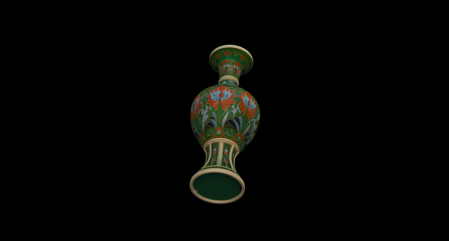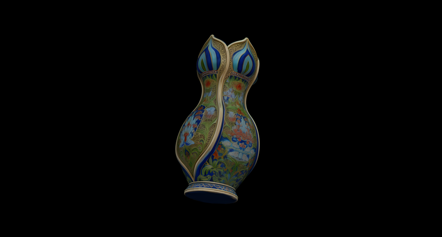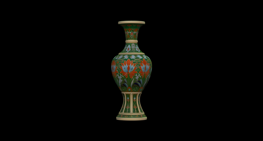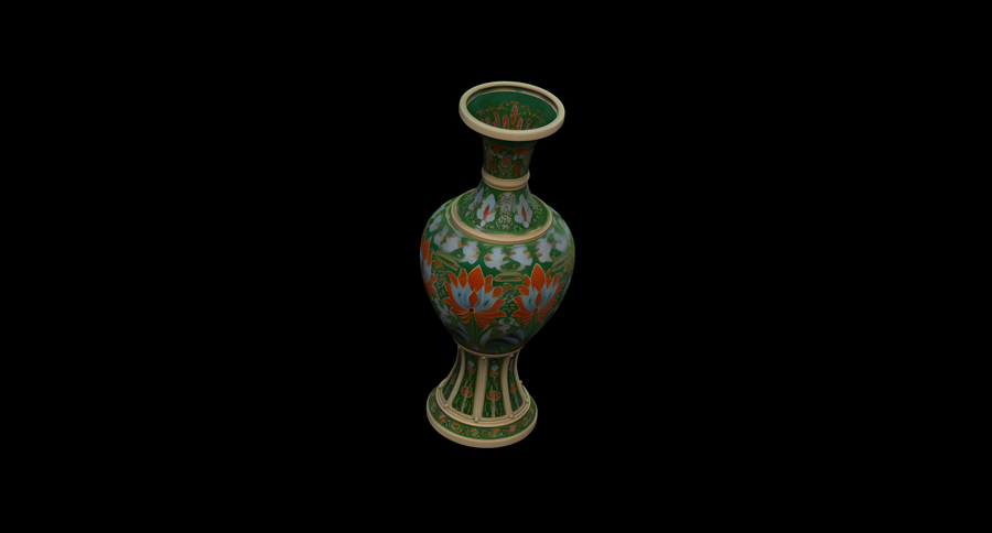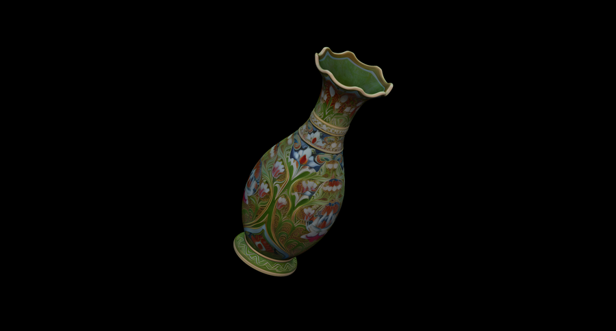 Вазы предоставлены в первичных формах, без имитации клуазоне, но возможно его создание с помощью Displacement Maps в Blender.