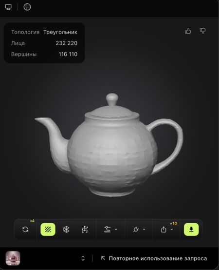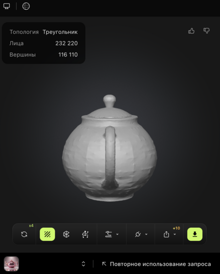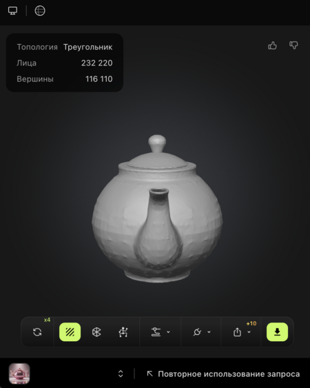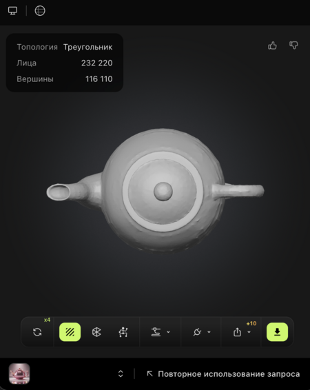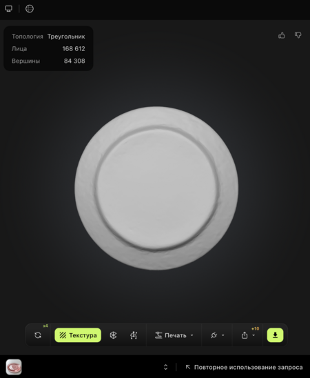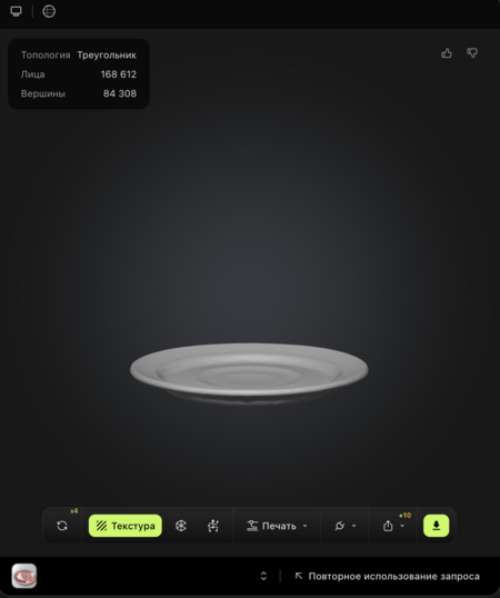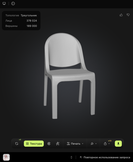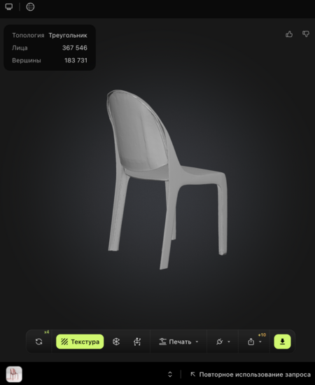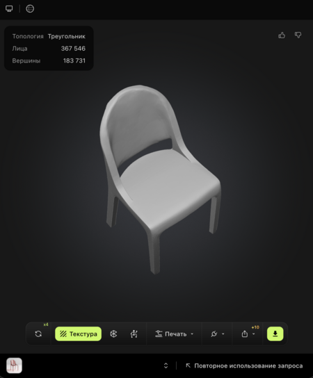 Этап 1 — Генерация моделей — инструмент: Meshy.ai — процесс: загрузка референса → генерация 3D-модели → выбор версии с лучшей топологией — см. скрин: процесс создания модели стула