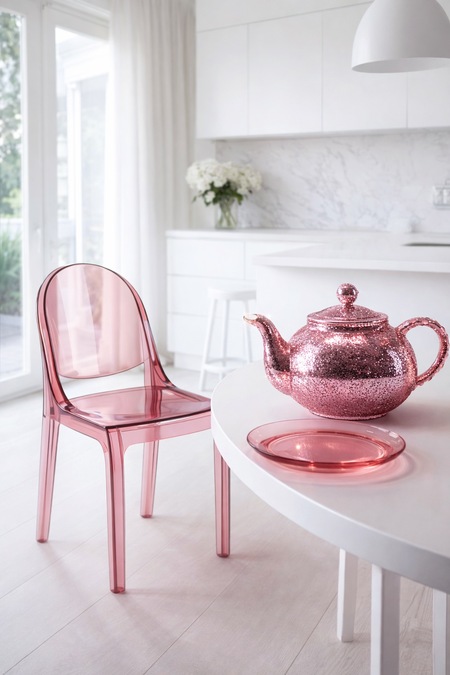 Серия кухонных товаров выполнена в единой стилистике с использованием розовой цветовой палитры и прозрачных материалов. Основная идея — создать коллекцию эстетичных и декоративных предметов для сервировки, которые объединяют функциональность и эффектный визуальный стиль. В основе концепции лежит гармония между минимализмом формы и выразительностью поверхности. Прозрачность и отражающие свойства материалов подчеркивают декоративность предметов и создают уникальную игру света, характерную для современных интерьерных решений.