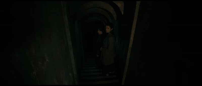 Этот момент предательства и необратимого решения визуально подчёркивается резкой сменой операторской работы: от плавной, наблюдательной съёмки к динамичной, имитирующей хаотичный бег по лестнице. Этот приём создаёт ощущение тревоги и неоднозначности, и прямо намекает зрителю, что выбор «Идущего человека» ведёт к недобрым последствиям. Если рассматривать этот переход как чистилище, то именно эта лестница привела персонажа прямиком в ад.