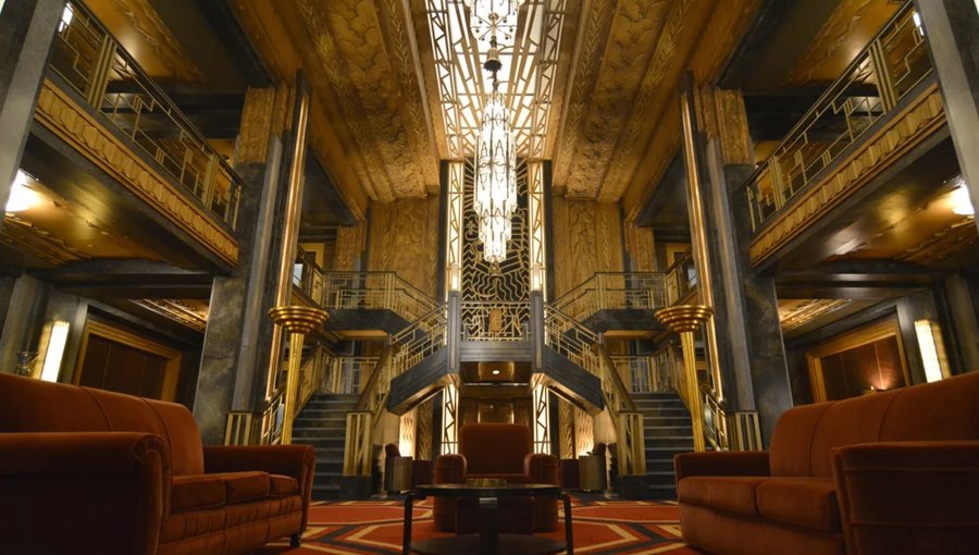 В фильме Стэнли Кубрика «Сияние» (1980), снятом по мотивам романа Стивена Кинга, происходит ключевая сцена встречи Джека Торранса и его жены Венди в холле отеля «Оверлук». К этому моменту Венди находится в крайне отчаянном состоянии, полностью осознавая, что с её мужем происходит что-то ужасное и непредсказуемое. Оставив сына в комнате с мультфильмами, она берёт биту и спускается в холл в поисках Джека, осматривая его рабочее место.